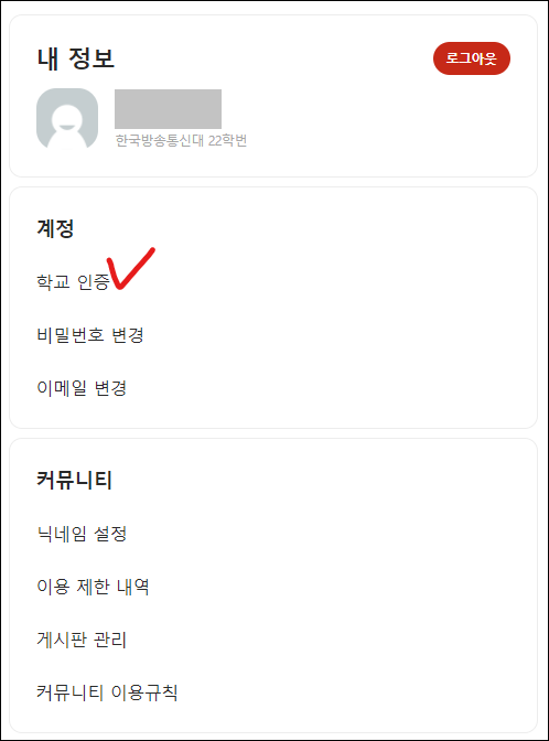 내 정보 - 학교 인증