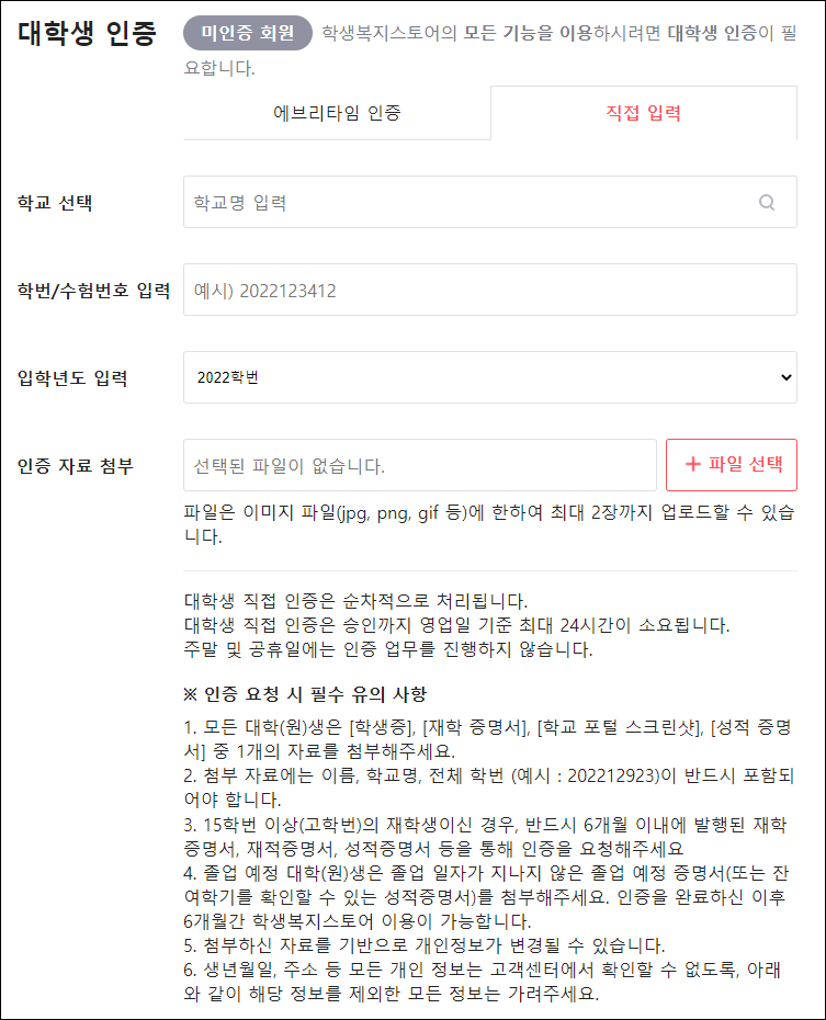 다시 학생복지스토어 접속 - 대학생 인증 후 가격 확인 - [에브리타임 인증] 이 과정 반복해야 함