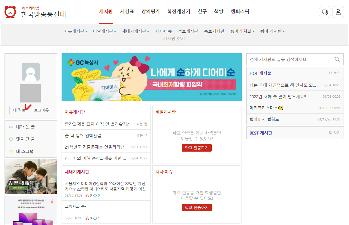 딴소리지만 처음에 에브리타임 인증 <- 이거 보고 사람들이 얘기하는 에타인줄 몰랐음 ㅎ 할미의 비애